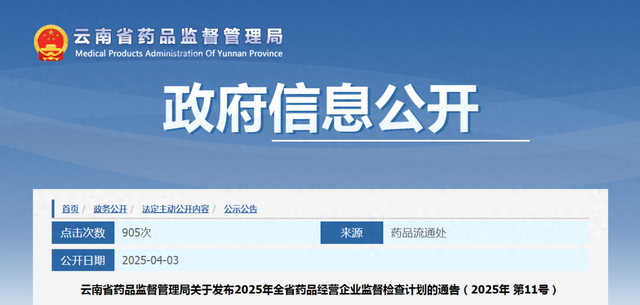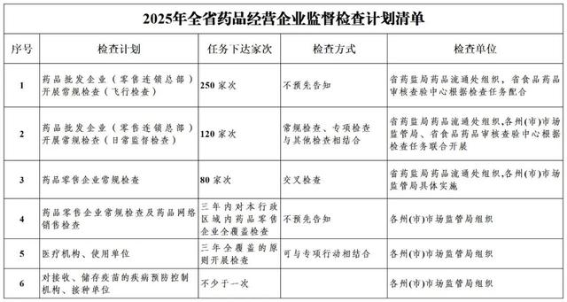为全面落实2025年全国药品监督管理工作会议精神,按照《药品经营和使用质量监督管理办法》《药品检查管理办法(试行)》等相关规定,云南省药品监督管理局制定了2025年全省药品经营企业监督检查计划,现予以发布。