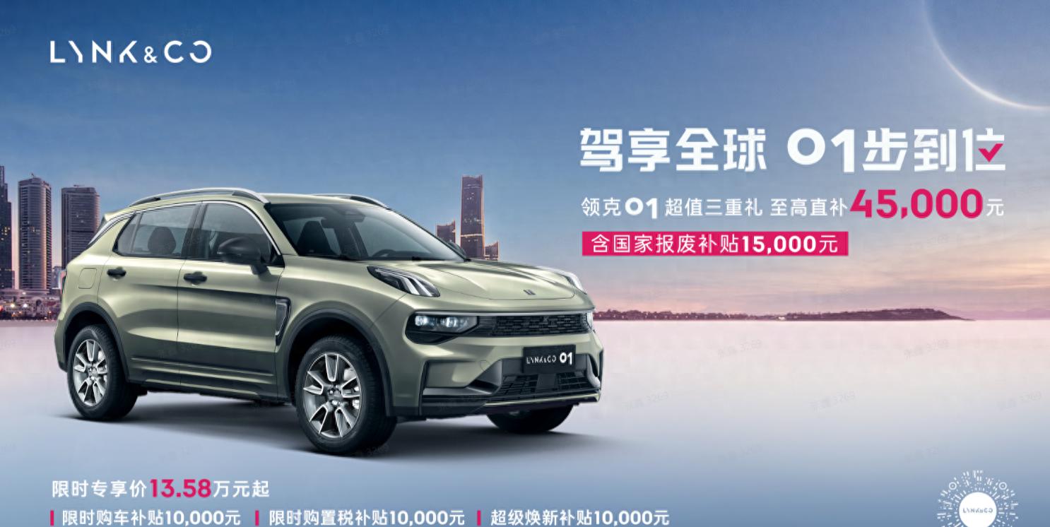 而领克01作为A级燃油SUV市场的标杆车型,也以综合产品力为基础,叠加极具竞争力的终端优惠,终端统一售价仅13.58万元起(详情请咨询当地经销商),精准契合年轻消费群体对“高性价比+无套路购车”的需求,成为该细分市场的热门选择。