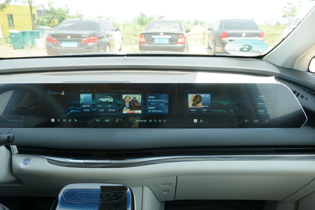 来到内饰部分,风行星海V9内饰采用了与外观风格一致的设计风格,山云涧座舱设计以中国画山水为表现手法,用料也十分豪华。车内41英寸智能超清三联屏是亮点,由12.3英寸全液晶仪表、16.2英寸中控屏和12.3英寸副驾娱乐屏组成,搭载了腾讯TAI 4.0智能车机系统,系统内置有高通骁龙8155芯片,并支持4G网络、四区域语音识别唤醒、WI-FI热点、手机APP远程控制以及OTA升级等功能,操作起来十分流畅。