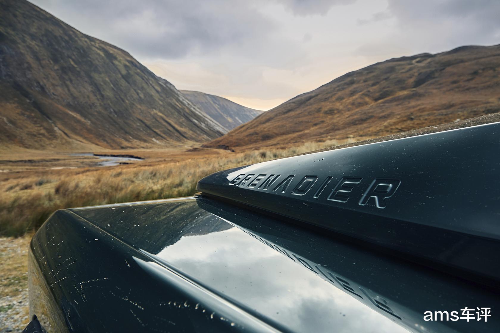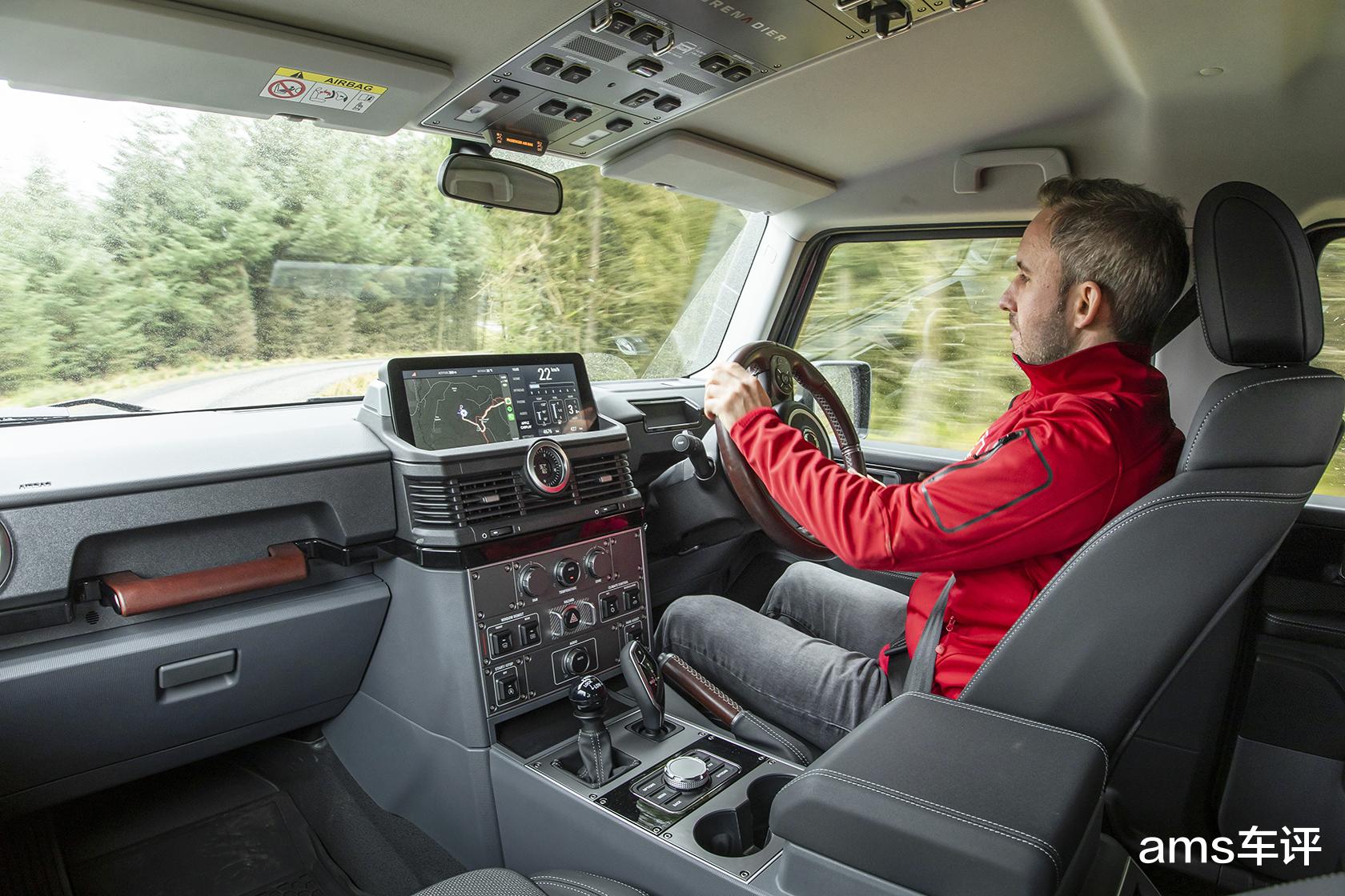 在酒吧里画出第一张啤酒杯垫草图的六年后,以及在完成了数十万公里的测试后,配备“肥大”AT轮胎的量产版Grenadier在深及脚踝的泥浆中沿着苏格兰边境附近的哈德良长城(Hadrianswall)行进。在基尔德森林(Kielder Forest)的泥泞小路上,单凭越野模式和中央差速锁在某些地方已经无法再前进。此时前后桥上的差速器也必须被锁定,并通过大力拉动换挡杆旁边的短柄来接通越野低速挡。车尾一次又一次地稍稍滑开,“气势汹汹”地靠近邻近的溪道。时而打一点反方向,时而多加一点油门,就能把Grenadier拉回正轨。并不是说路虎卫士就不行,但坐在Grenadier中进行越野驾驶就像在科隆至法兰克福的A3高速公路上行驶或在杜塞尔多夫的国王大街上漫步一样有趣。因为,尽管它的外观质朴,但的确是一辆现代化的汽车,有用于攀岩、速降、涉水和其他一切的控制电子设备。Grenadier让人相信,你就是那个用方向盘、踏板和几个按钮征服大自然的英雄。因为你知道Grenadier是一辆有着梯形车架,其下还有整体式车桥的越野车。你相信它的坚固性,所以你在心理上戴上了涂有石英砂的粗手套,而不是薄薄的天鹅绒手套,以便在必要的情况下对车辆给予点拨,就像一位骑师在接近障碍物时对他的马进行必要的鞭策。即便眼前的坑洞很大,水很深,激起的泥浆很高,陡坡的坡度也令人生畏,你所要做的也不过是按下正确的按钮,然后便会使远离沥青路面之外的风景展现在自己和Grenadier的脚下。