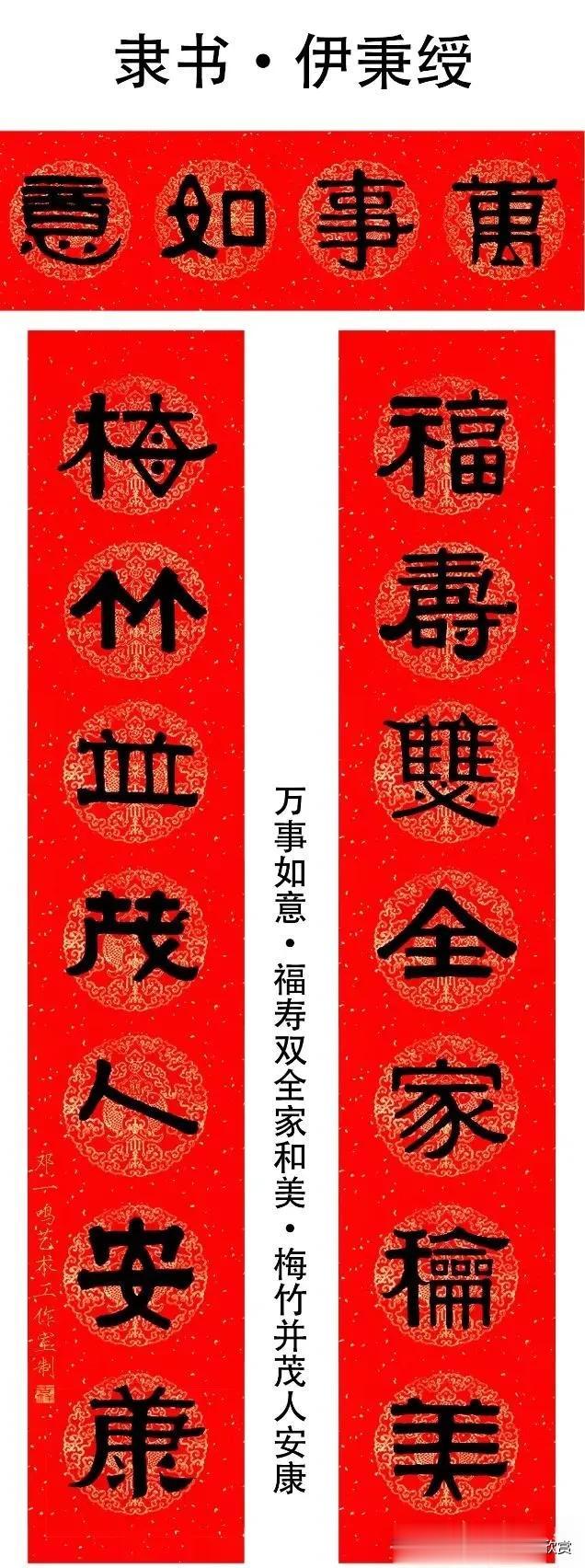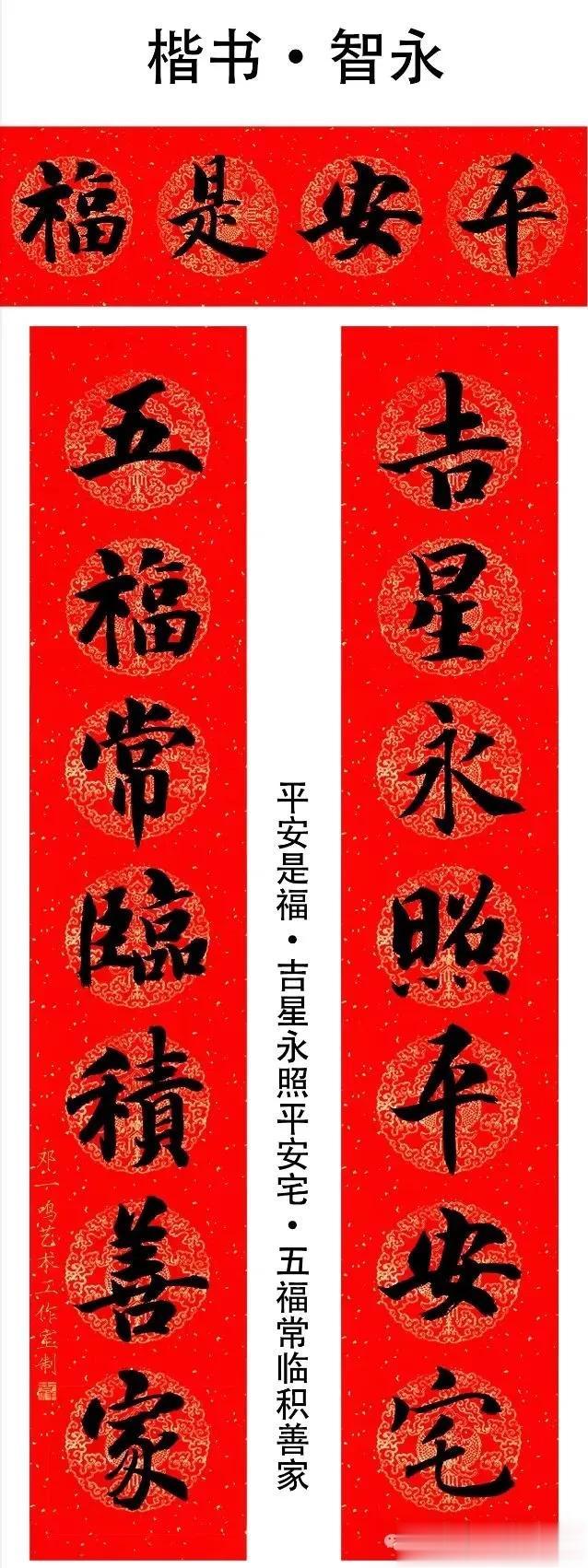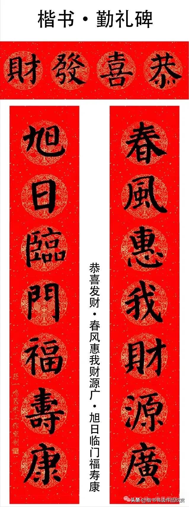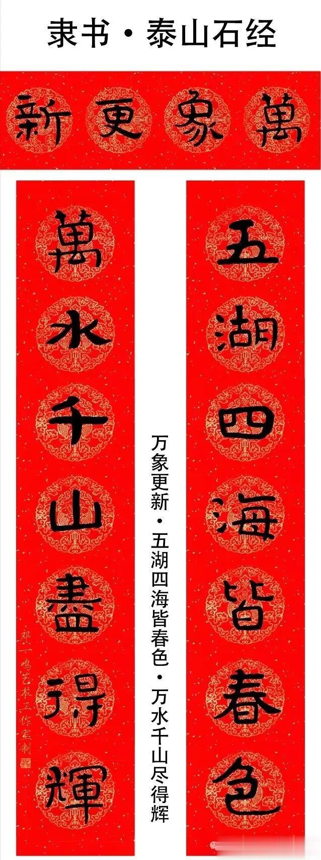 2025蛇年高清集字春联大全120幅。四体经典合集。包括:颜真卿(多宝塔碑、勤礼碑)、褚遂良、智永、赵孟頫、赵之谦等的楷书;王羲之、赵孟頫的行书;曹全碑、张迁碑、礼器碑、乙瑛碑等隶书;赵之谦、邓石如的篆书等......,不同书法风格的集字春联。
