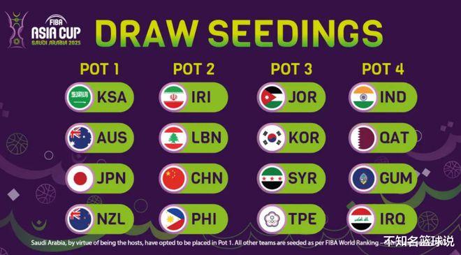如今2025年FIBA男篮亚洲杯正赛抽签结果出炉,具体如下: