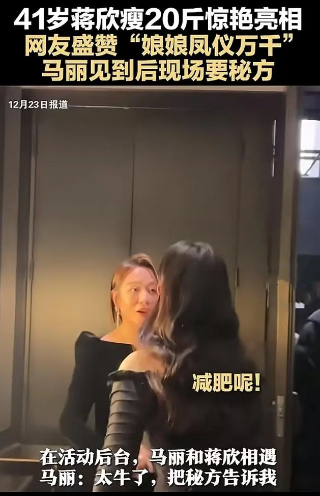 值得一提的是,在前两日的活动里,蒋欣的惊艳亮相不仅引来在场所有人的关注,演员马丽看到又白又美又瘦的蒋欣也是无比惊喜,丽姐还拉着蒋欣的手直夸对方“太牛了”,在得知蒋欣减肥之后更是现在就向蒋欣寻求减肥秘方,简直太可爱啦,哈哈哈。所以,后来蒋欣到底有没有告知马丽自己的减肥方法呢,相信很多女孩子也非常想知道蒋欣是如何瘦下来的吧。