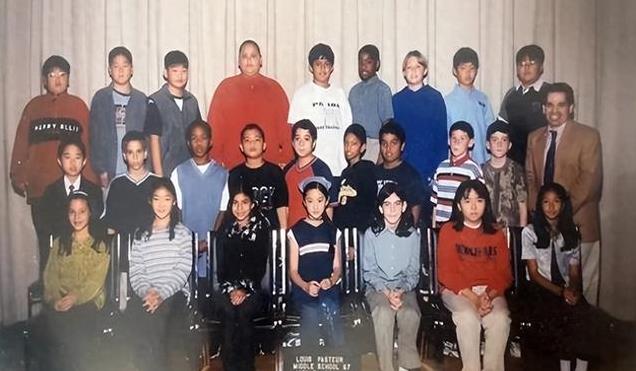 12岁的她,在美国的教室里,坐在第一排正中间,漂亮得像个小仙女。