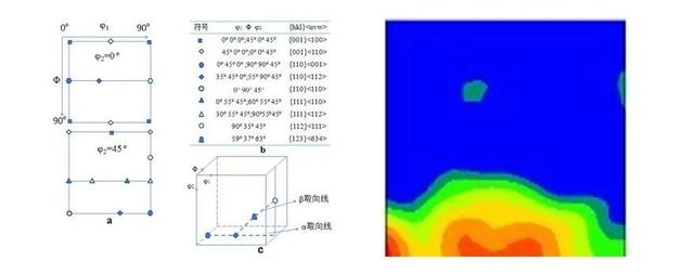 极图和反极图是用二维图形来描述三维空间取向分布,存在局限性。而采用ODF图可以表达整个空间的取向分布,所以用一系列ODF截面图来判断织构类型,信息更全面。