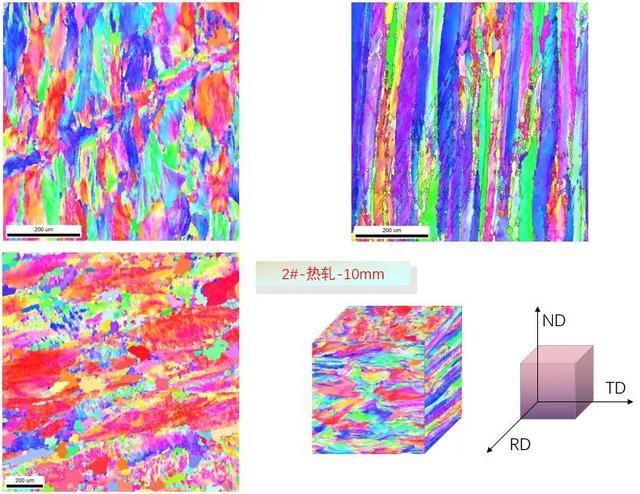 色彩代表了平行于参考方向的晶向(这里参考方向为试样的轧制方向)