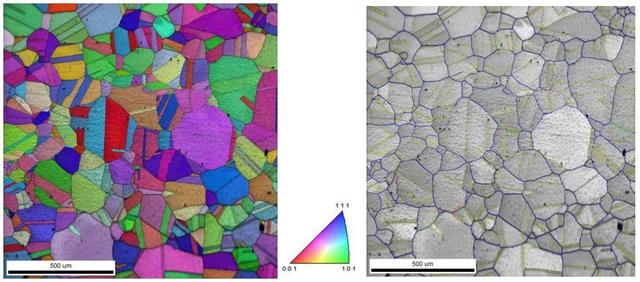 由于晶粒主要被定义为均匀结晶学取向的单元,EBSD是作为晶粒尺寸测量的理想工具。最简单的方法是进行横穿试样的线扫描,同时观察花样的变化。