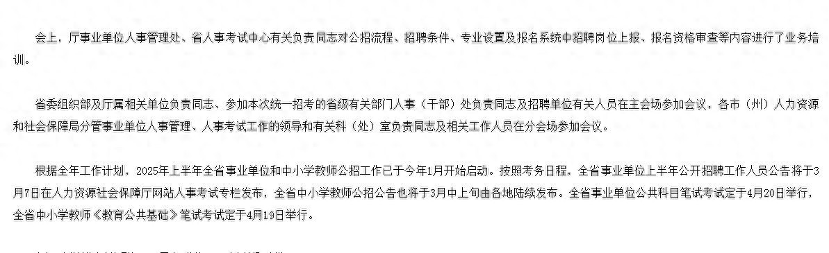原标题:2025年上半年全省事业单位统一公招工作部署暨业务培训视频会议召开