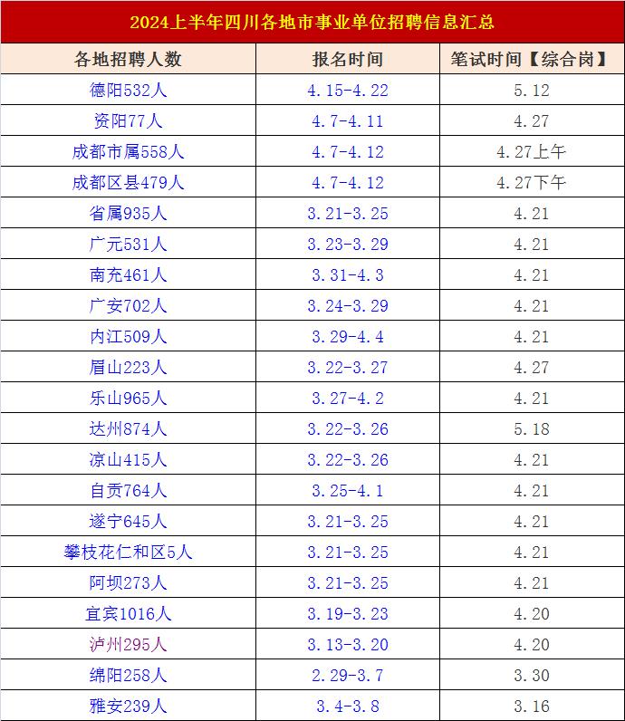 下面我们来看看2024上半年四川各地市共招10000+人,参考一下。