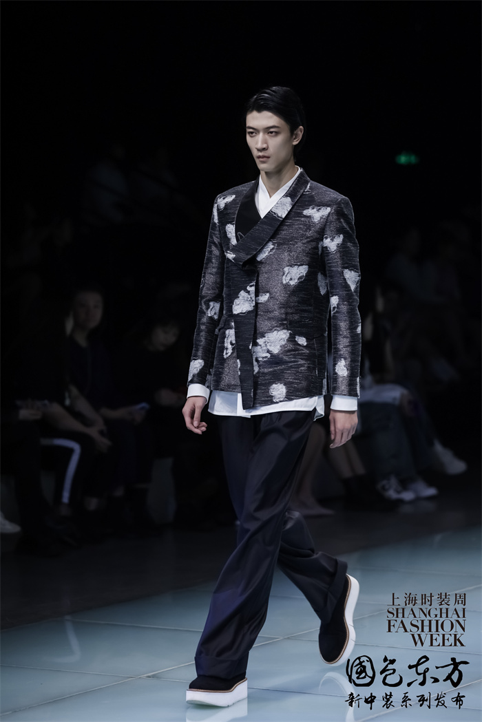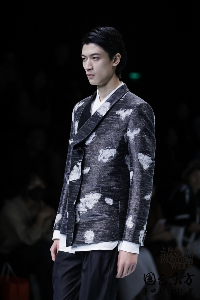 为本季海洋和滩涂的元素,此季运用大量充满自然、原始风味的面料,并以异材质、图腾以及面料提花技巧间接呈现不同时代和文化的多元素材、装饰与滚边:中式立领衬衫、丝毛轻薄外套,缎面搭配提花布等等的多元搭配轮番上阵,并以不同的绣工绣法作点缀;衬衫的重点在于吉祥图案或者滩涂海洋装饰,也让整体效果更加活泼丰富;穿插着ZENGFENGFEI惯用的吉祥图腾,在云水间谱写一曲动人的歌谣,同时也是一幅令人倾倒的畫面。