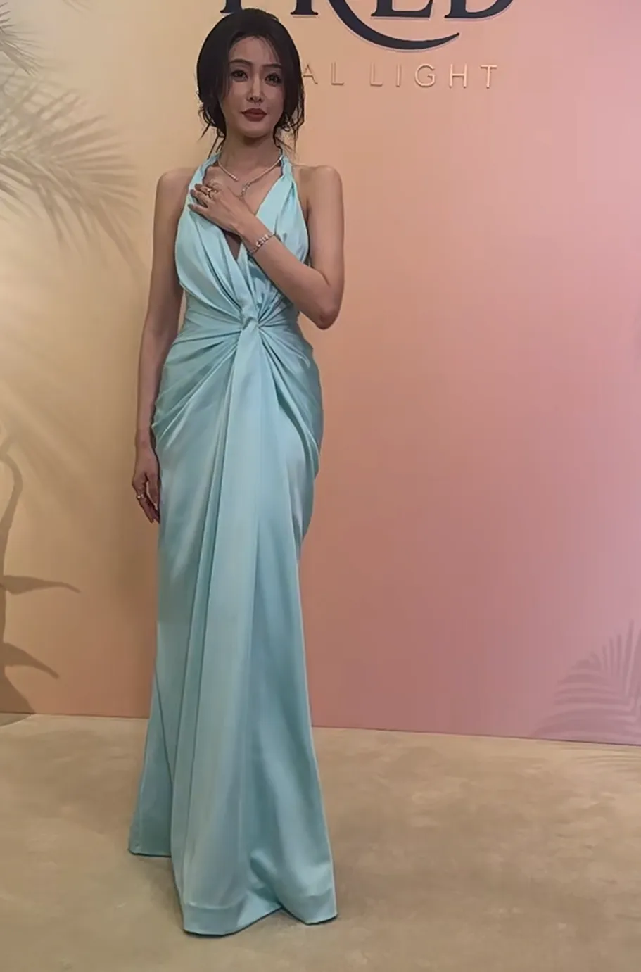 与此同时,张天爱以一条蓝色挂脖长裙出现在众人视线中,搭配蓬松的发型,彰显了她熟女风格的魅力。