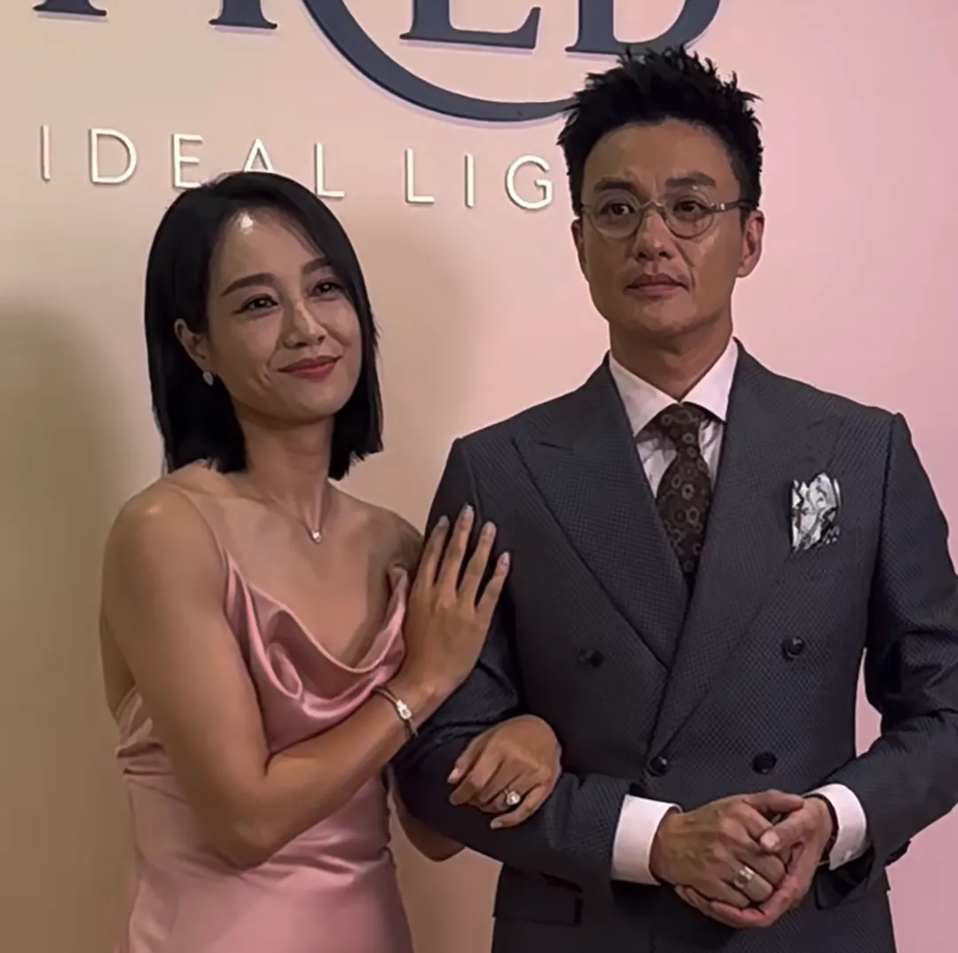 两人在布景板前的合照,宛如婚宴上精心打扮的夫妻,展现出了他们自律保持的良好身材和自然状态,没有任何人工修饰的痕迹。