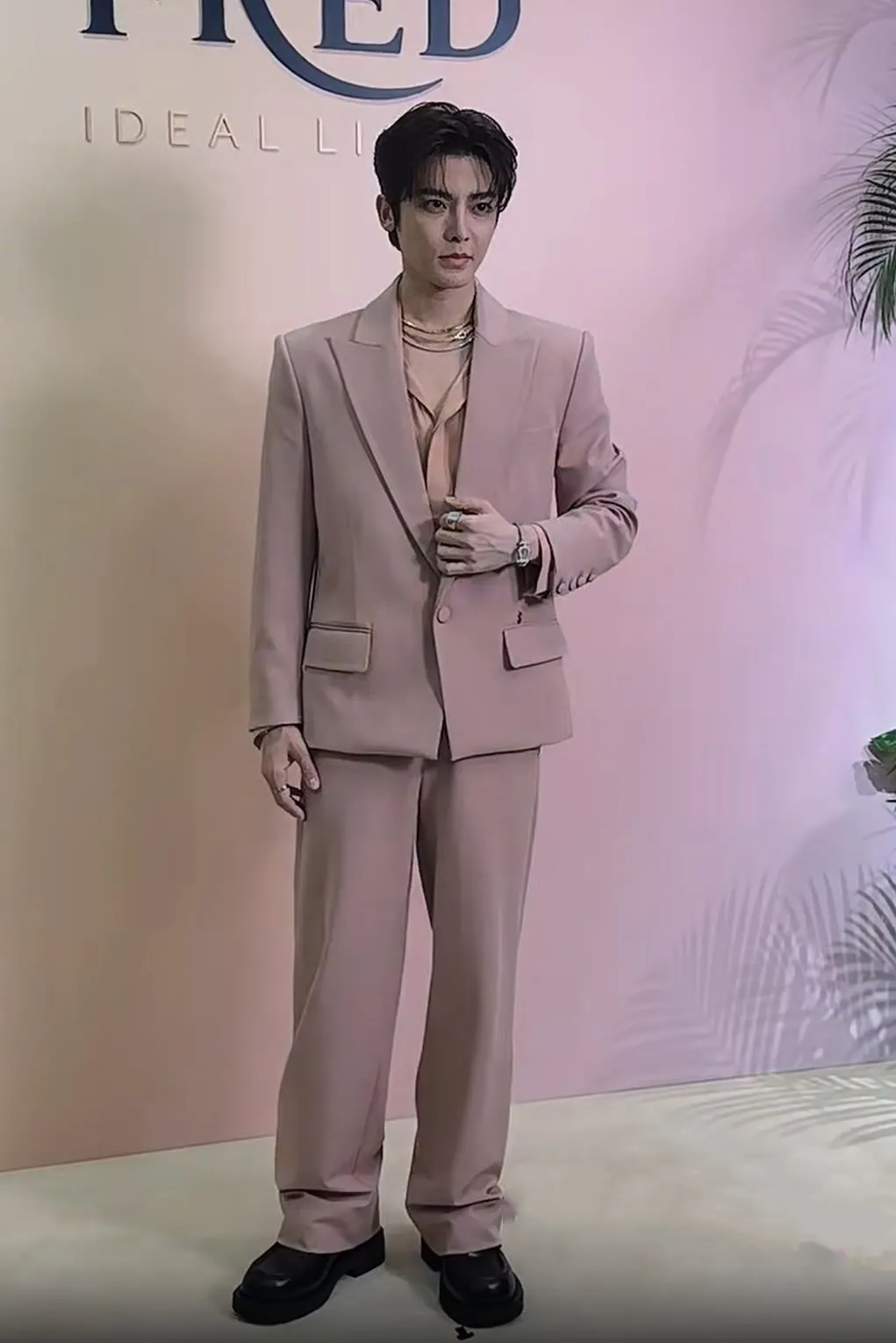 偶像剧新星侯明昊,以一套粉色西装出席活动,成为了现场的焦点。