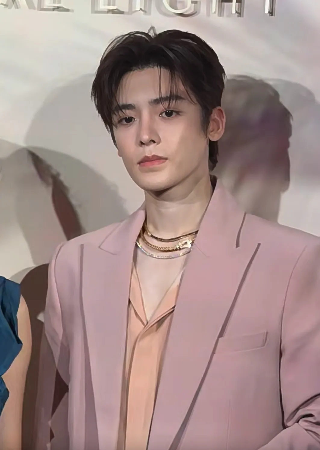 侯明昊的帅气属于时下流行的柔美型,这种帅气在精致的妆发下更加夺目,但也意味着他对造型的依赖性更强。