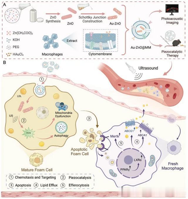 动脉粥样硬化易损斑块的特征是大量泡沫细胞聚集,进一步浸润沉积于冠状动脉壁内膜形成脂质条纹。压电催化疗法是消除泡沫细胞的一种新兴疗法,具有时空可控和深度渗透性。
