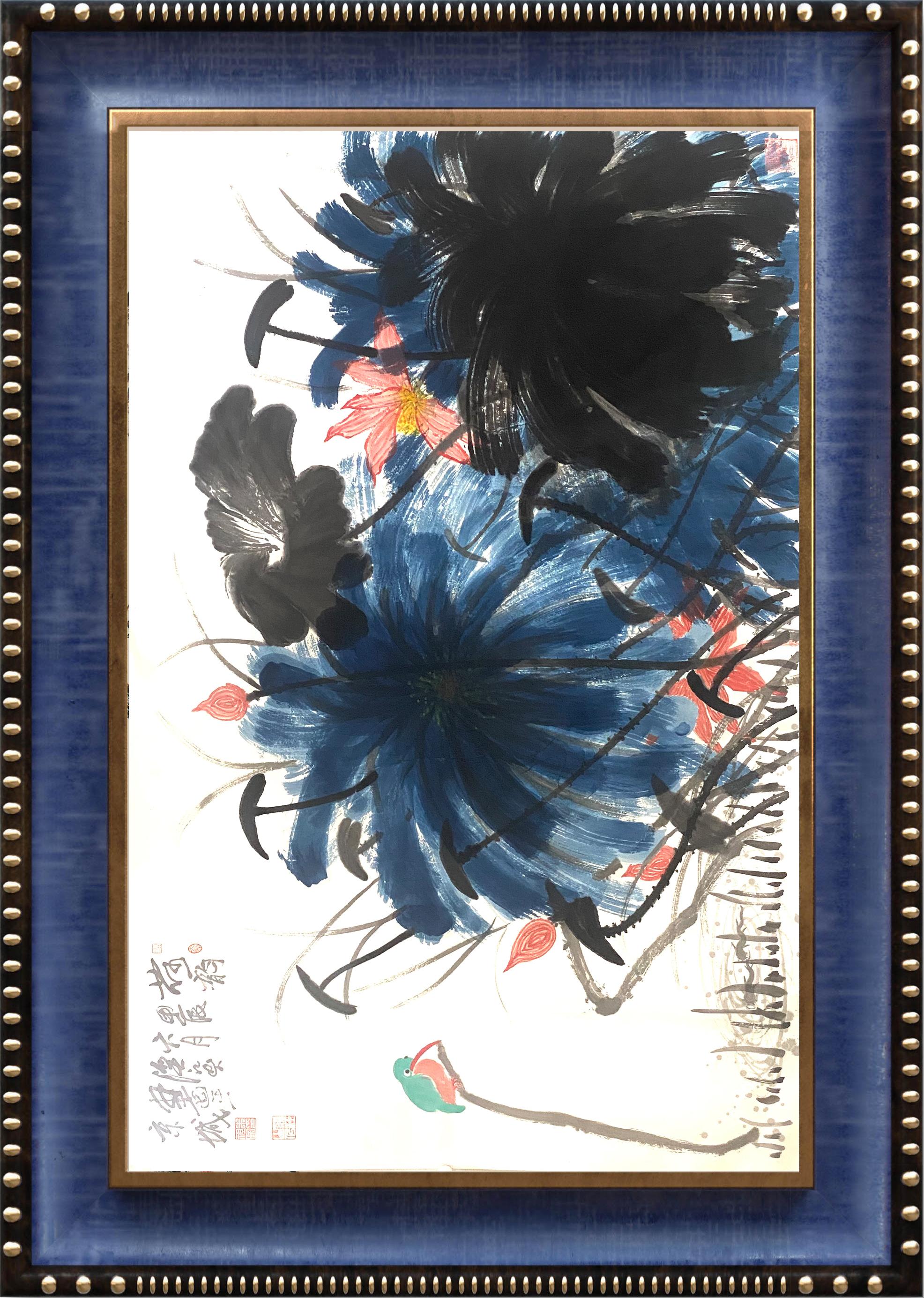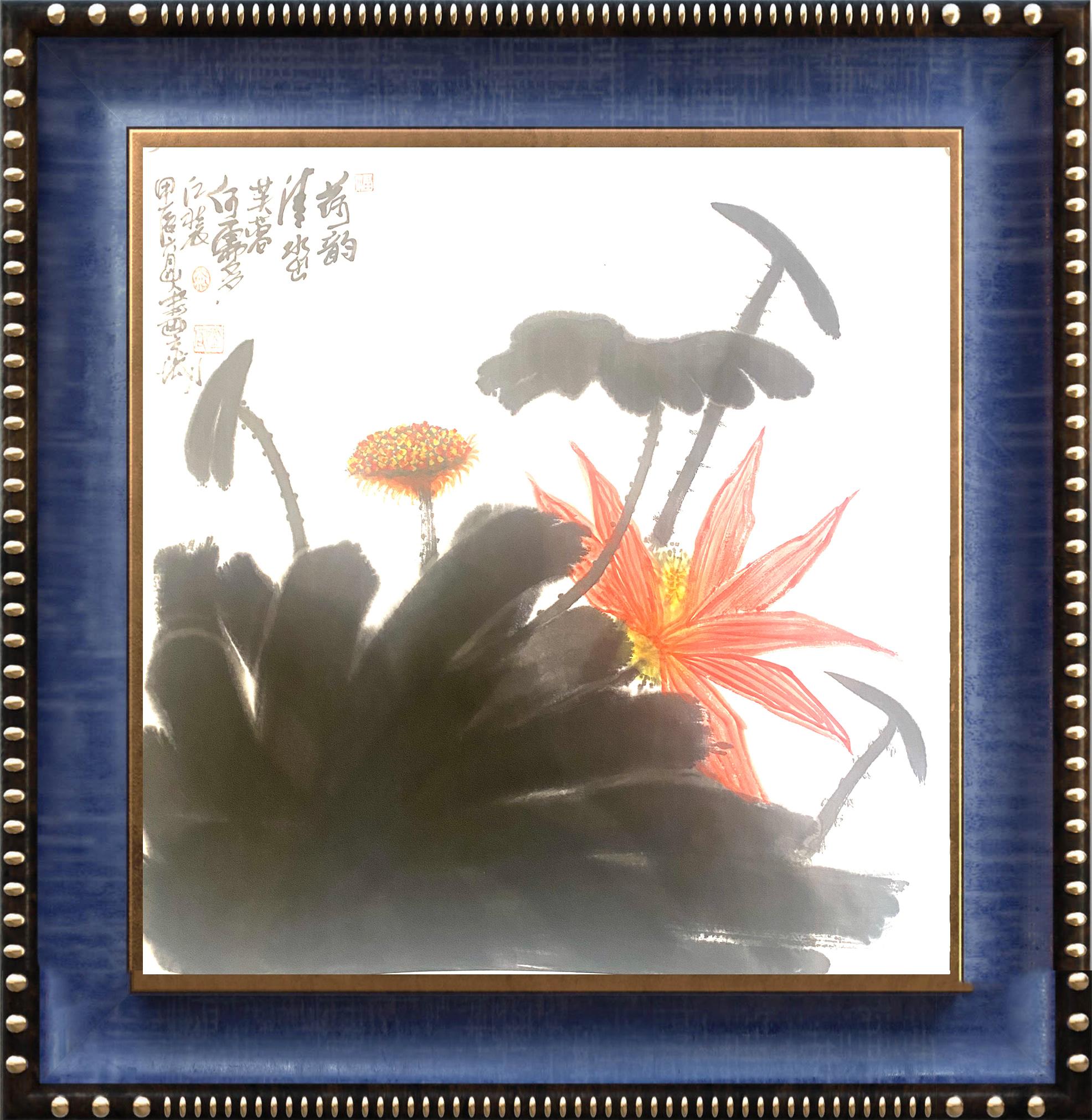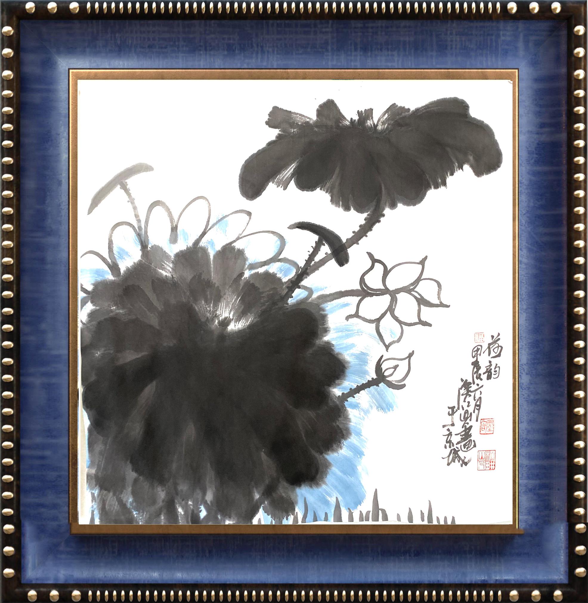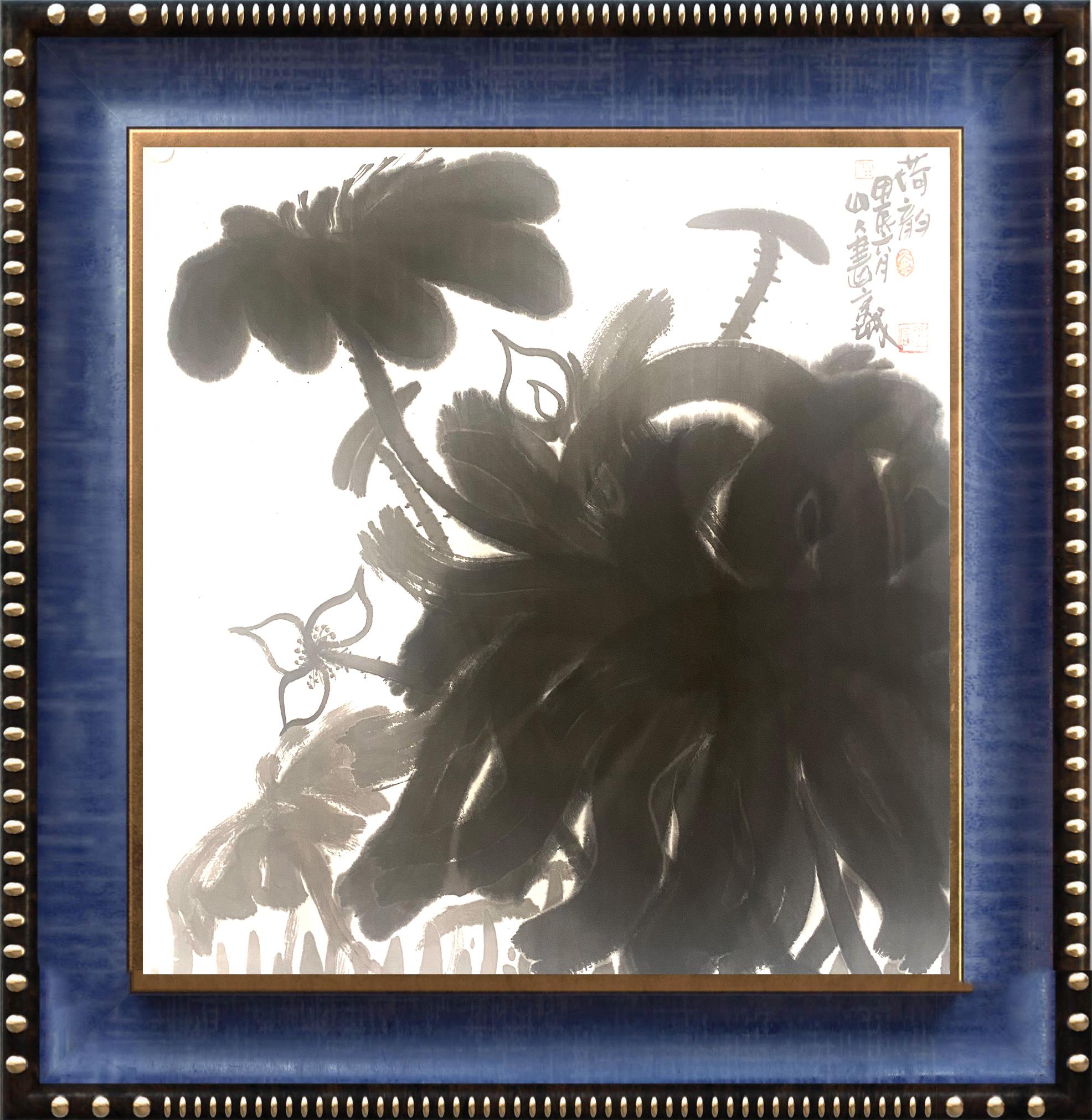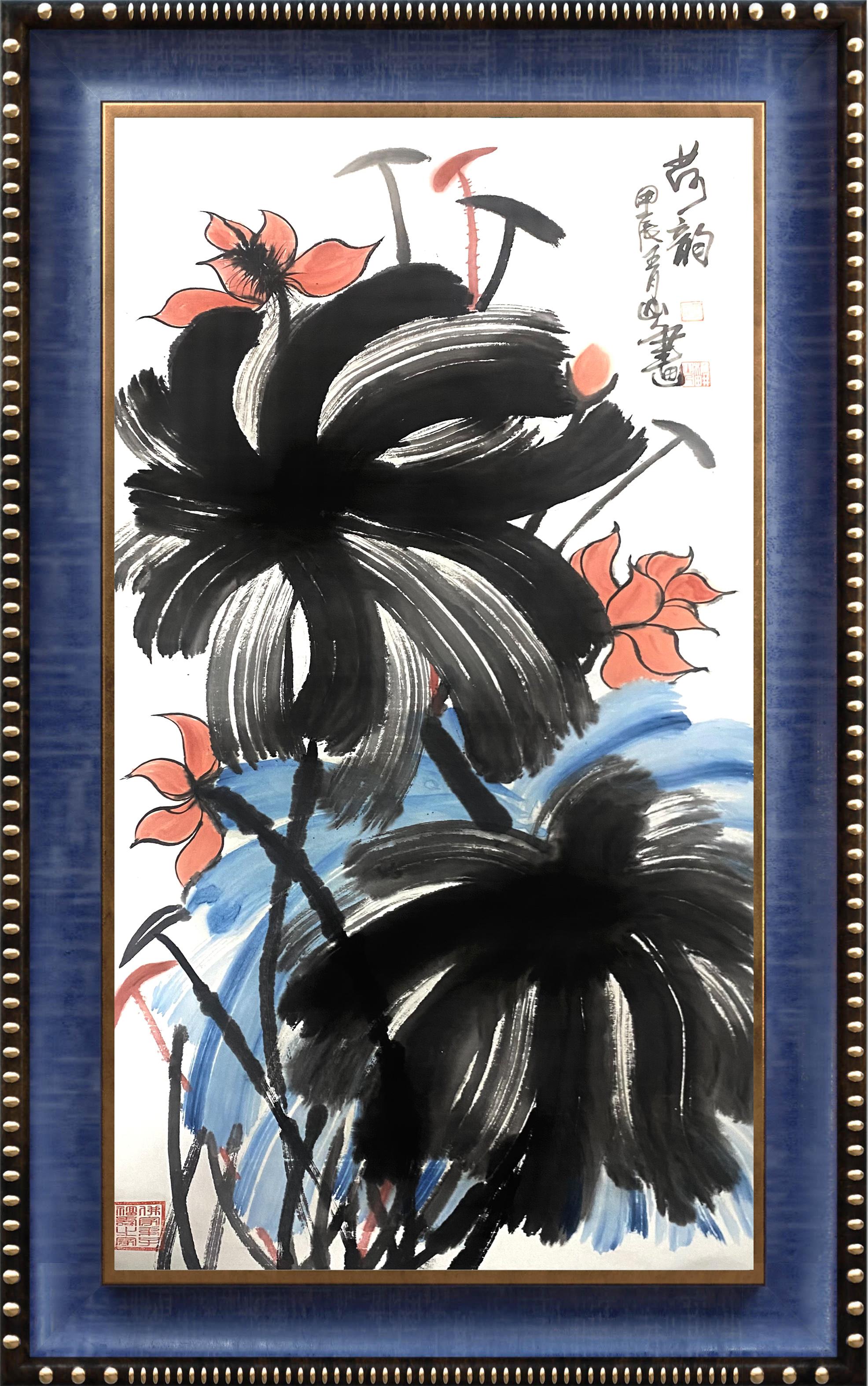 朱祖国先生画荷受石涛、八大山人的影响最大。就个性而言,朱祖国先生是较为接近石涛的奔放,但朱祖国先生能够吸取各家之精髓为己所用。朱祖国先生从石涛取“气”,从八大山人取“韵”,他早就掌握八大山人“面”的泼墨形式来发挥水墨,并创出意气飞扬的画风。再吸收宋人体察物情之“理”,因此,朱祖国先生所画的荷花,无论写意、设色、水墨皆精绝当世,实集古今画荷之大成。