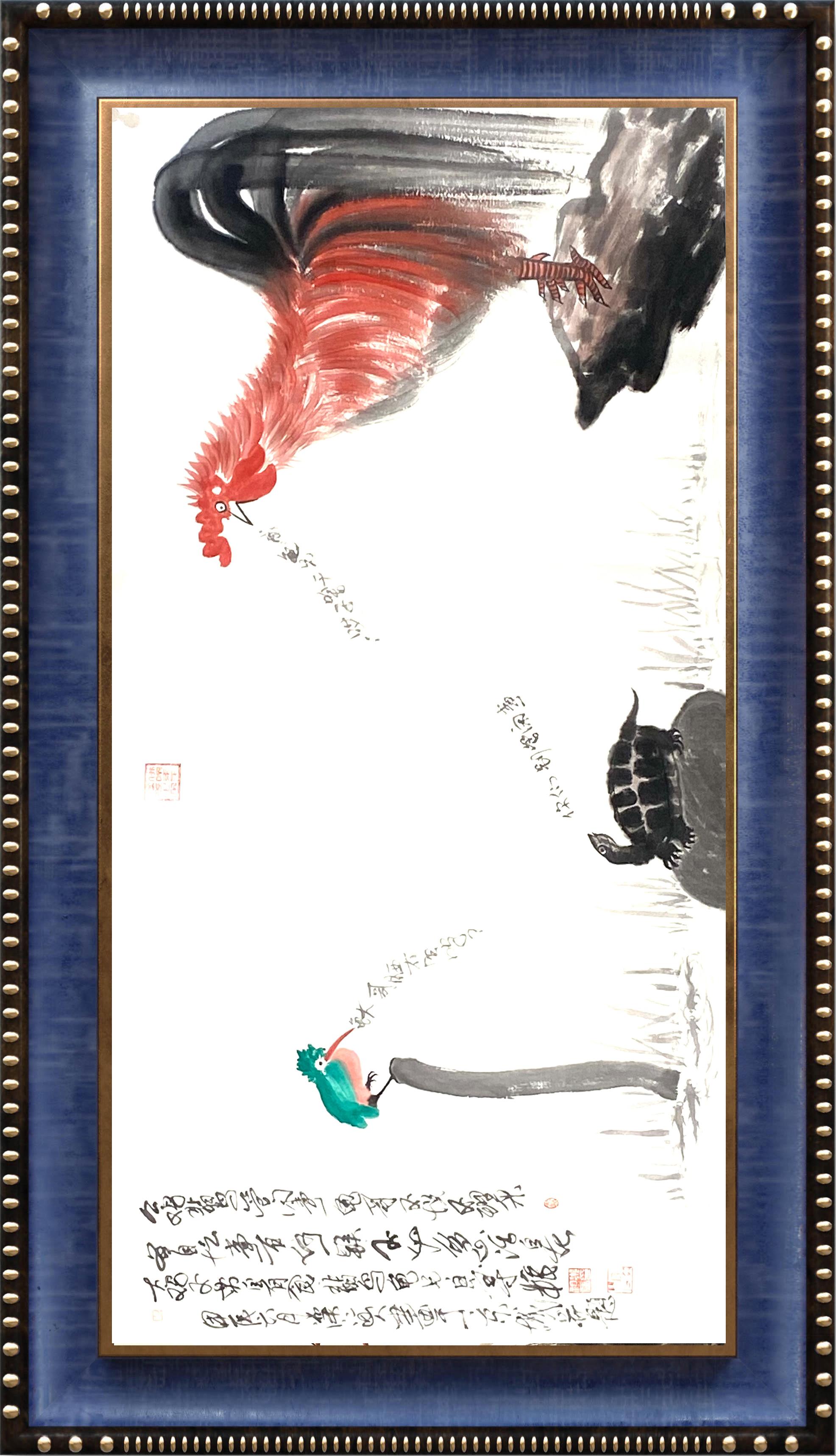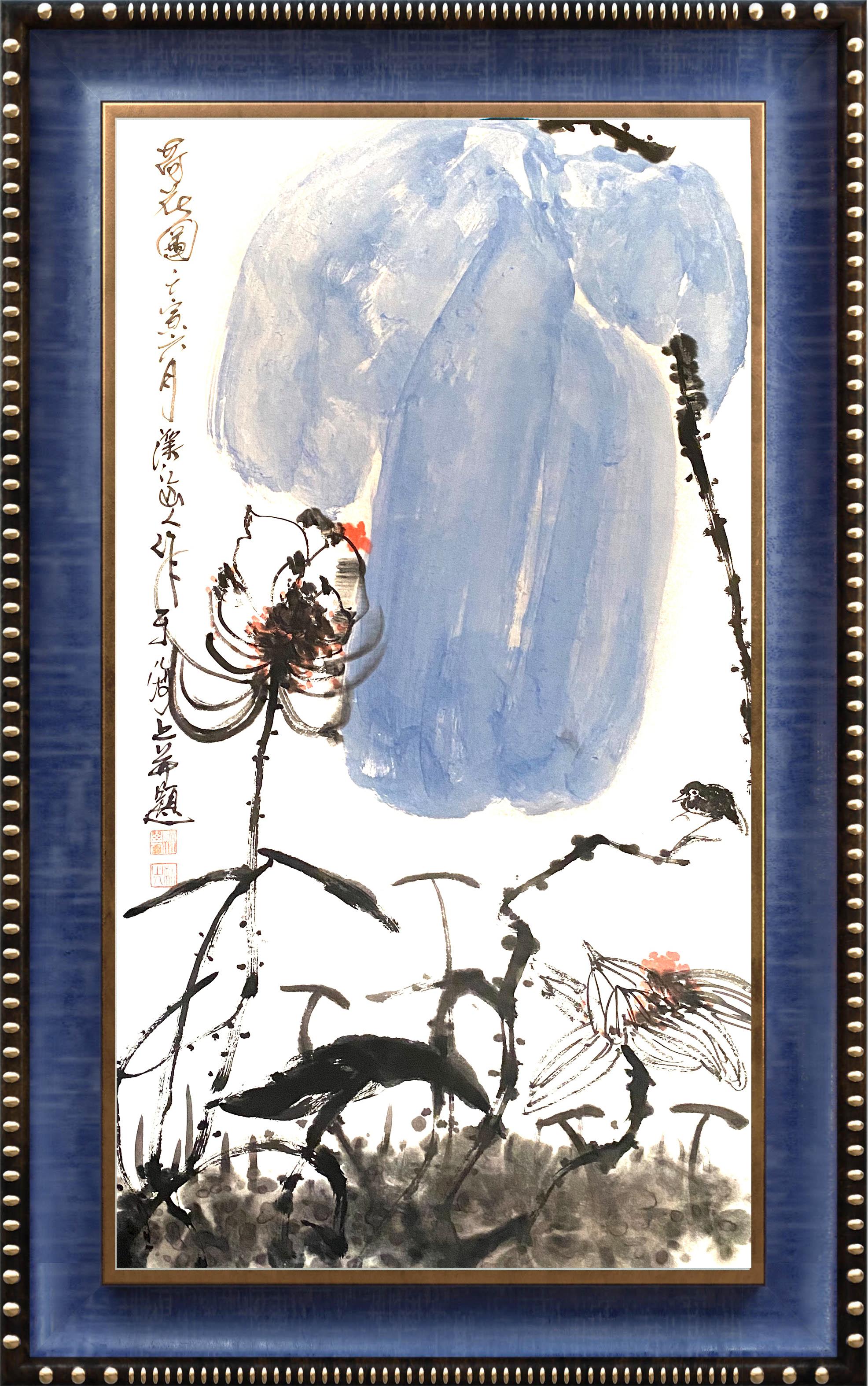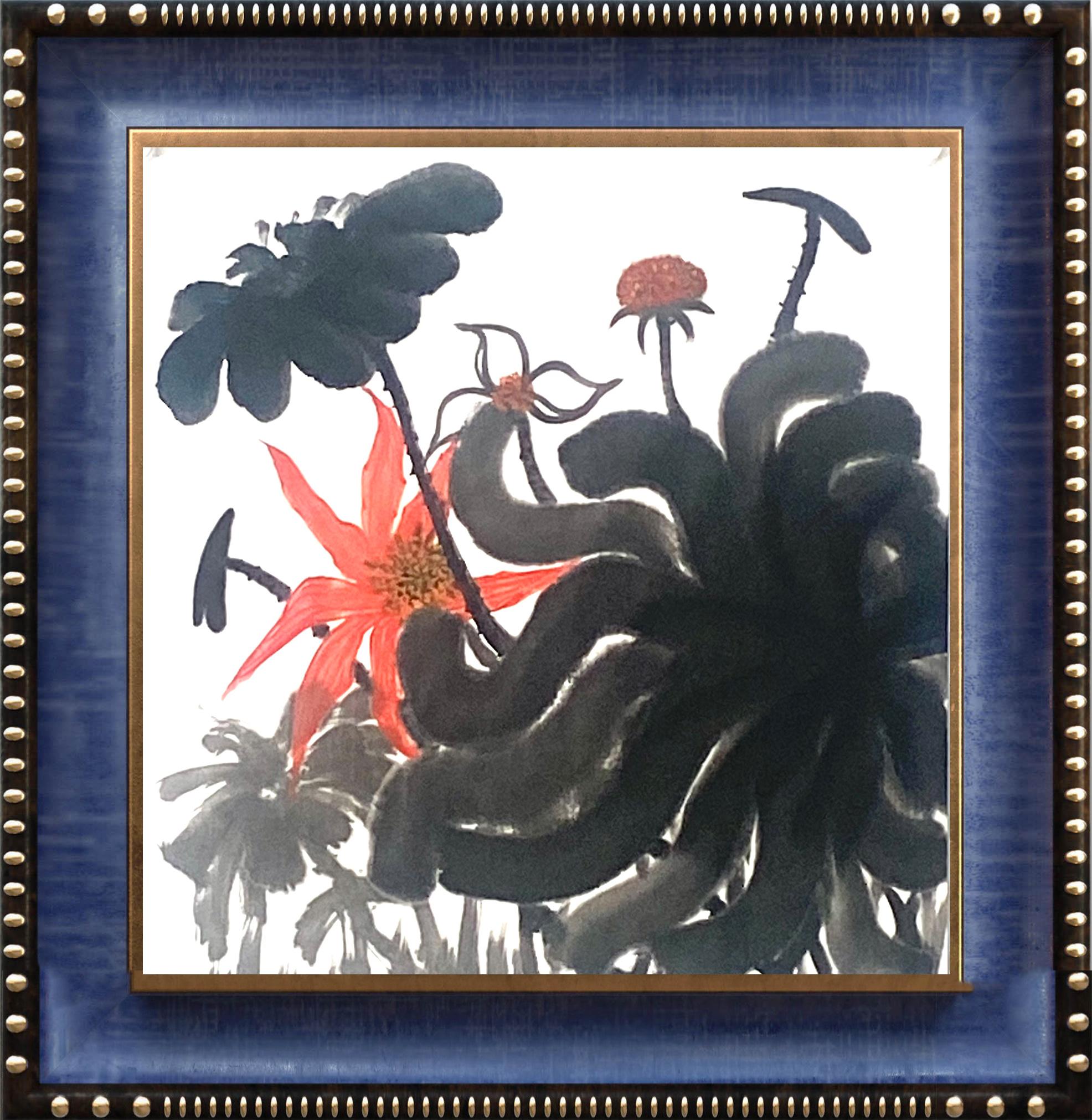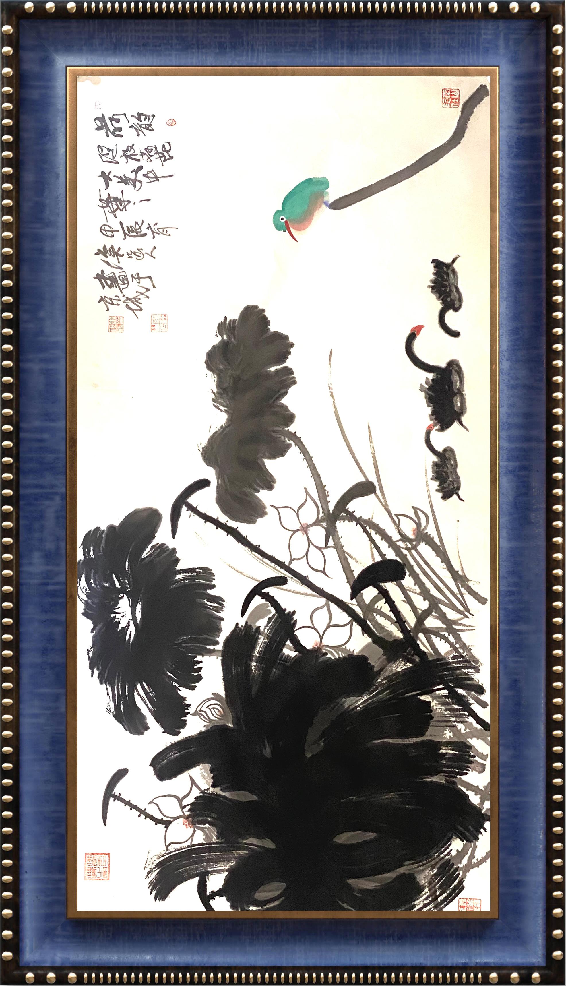 朱祖国先生画荷受石涛、八大山人的影响最大。就个性而言,朱祖国先生是较为接近石涛的奔放,但朱祖国先生能够吸取各家之精髓为己所用。朱祖国先生从石涛取“气”,从八大山人取“韵”,他早就掌握八大山人“面”的泼墨形式来发挥水墨,并创出意气飞扬的画风。再吸收宋人体察物情之“理”,因此,朱祖国先生所画的荷花,无论写意、设色、水墨皆精绝当世,实集古今画荷之大成。