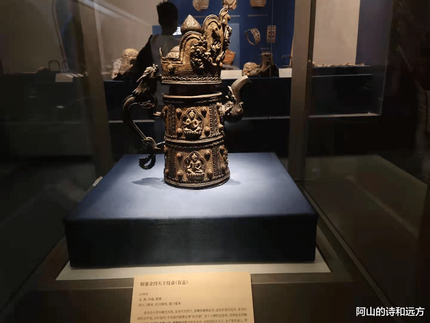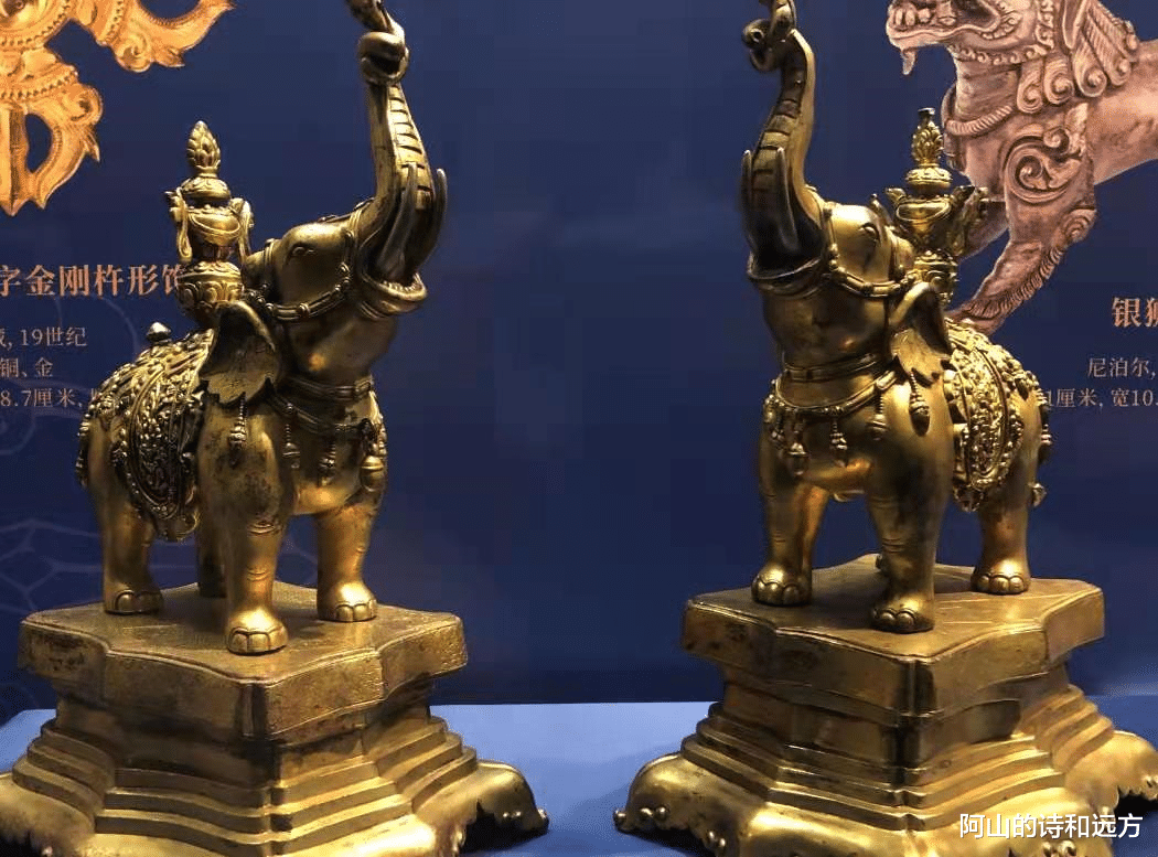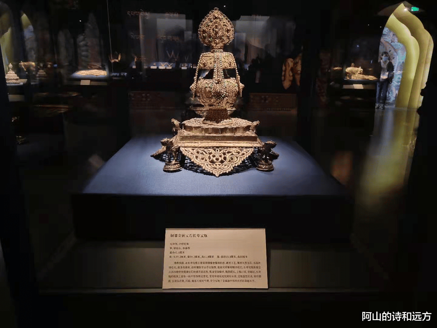 各种千奇百怪的宗教器物或装饰品是我以前见所未见的,想不到高原民族竟有这样豪华精美的用品或装饰品。在欣赏这些深具远方民族特色文化的同时,还从其中的瓷器、丝织物中可以看到一丝与汉地文化交流的痕迹,可见那些年代生活在高原的人们也一定程度受到内地文化的影响。