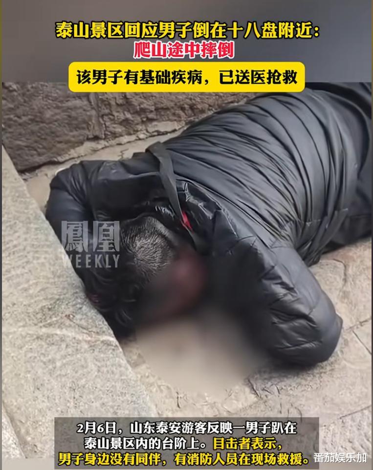 2月6日,泰山的游客说,有一个男子被被全身包裹抬下了山,估计人已经不行了,引发了很多人的猜测。