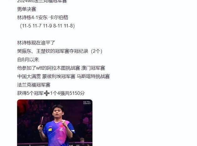 林诗栋的故事也让我们看到了乒乓球这项运动的魅力和价值。它不仅仅是一项运动,更是一种精神、一种态度。它教会我们如何面对挑战、如何坚持不懈、如何追求梦想。林诗栋用自己的行动诠释了这些精神,也为我们树立了榜样。