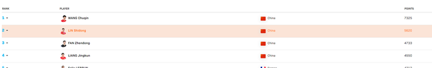 伴随林诗栋在各大赛事中的出色表现,他的积分也水涨船高。短短几个月的时间,他已经累积了5150分的积分,这一成绩在同龄人中堪称翘楚。而他的排名也故而迅速攀升,逼近了国家队队友王楚钦。