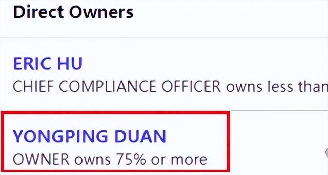 申报文件显示:这家机构由Eric Hu担任首席合规官。该机构共有两位所有人,另一位所有人是YONGPING DUAN,与段永平的名字一致。