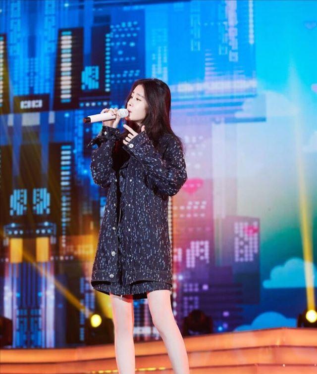 张碧晨穿着一身灰色的装备,搭配着一顶灰色帽子,优雅之余也保留了几分亲和力。