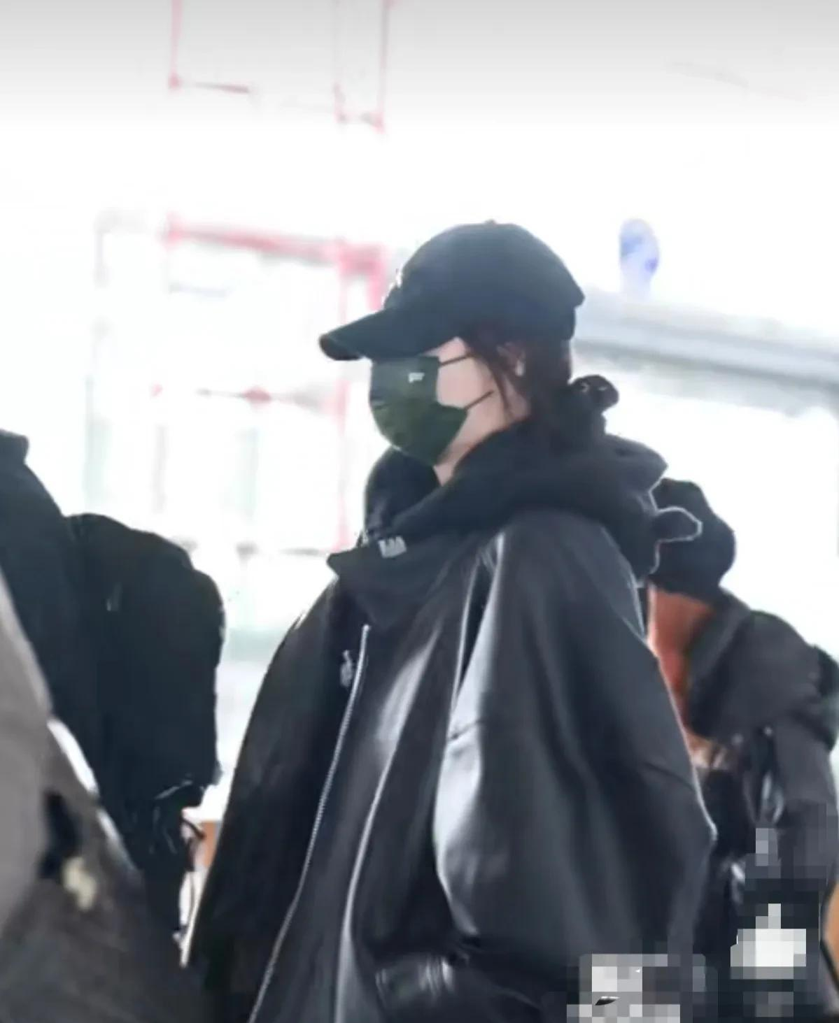 2月27日首都机场的追星区,代拍们对着突然切换暗黑模式的国民闺女集体傻眼——黑色手机壳配黑色卫衣,连口罩都黑得发亮,活脱脱现实版“黑化进行时”。