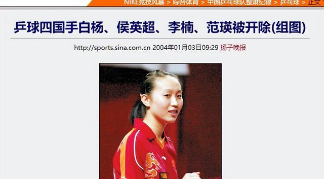 扬子晚报2004-01-03报道:乒球四国手白杨、侯英超、李楠、范瑛被开除(组图)