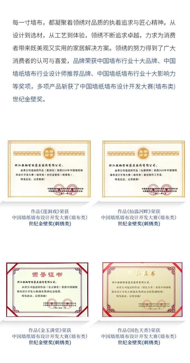 联翔股份诠释品牌价值“领绣墙布”荣膺“以旧换新”推荐品牌