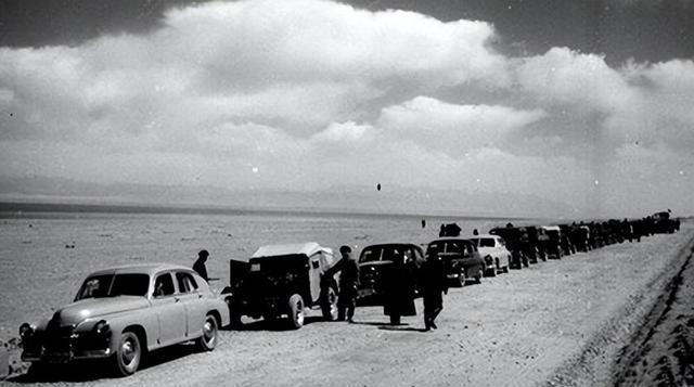中央代表团车队经长途跋涉,终达昆仑山脚。夜幕降临,陈毅元帅下令扎营休整。