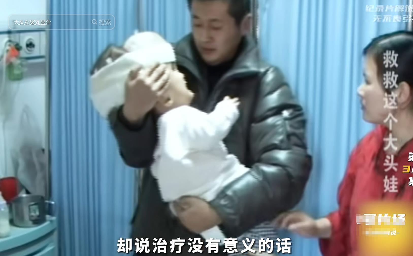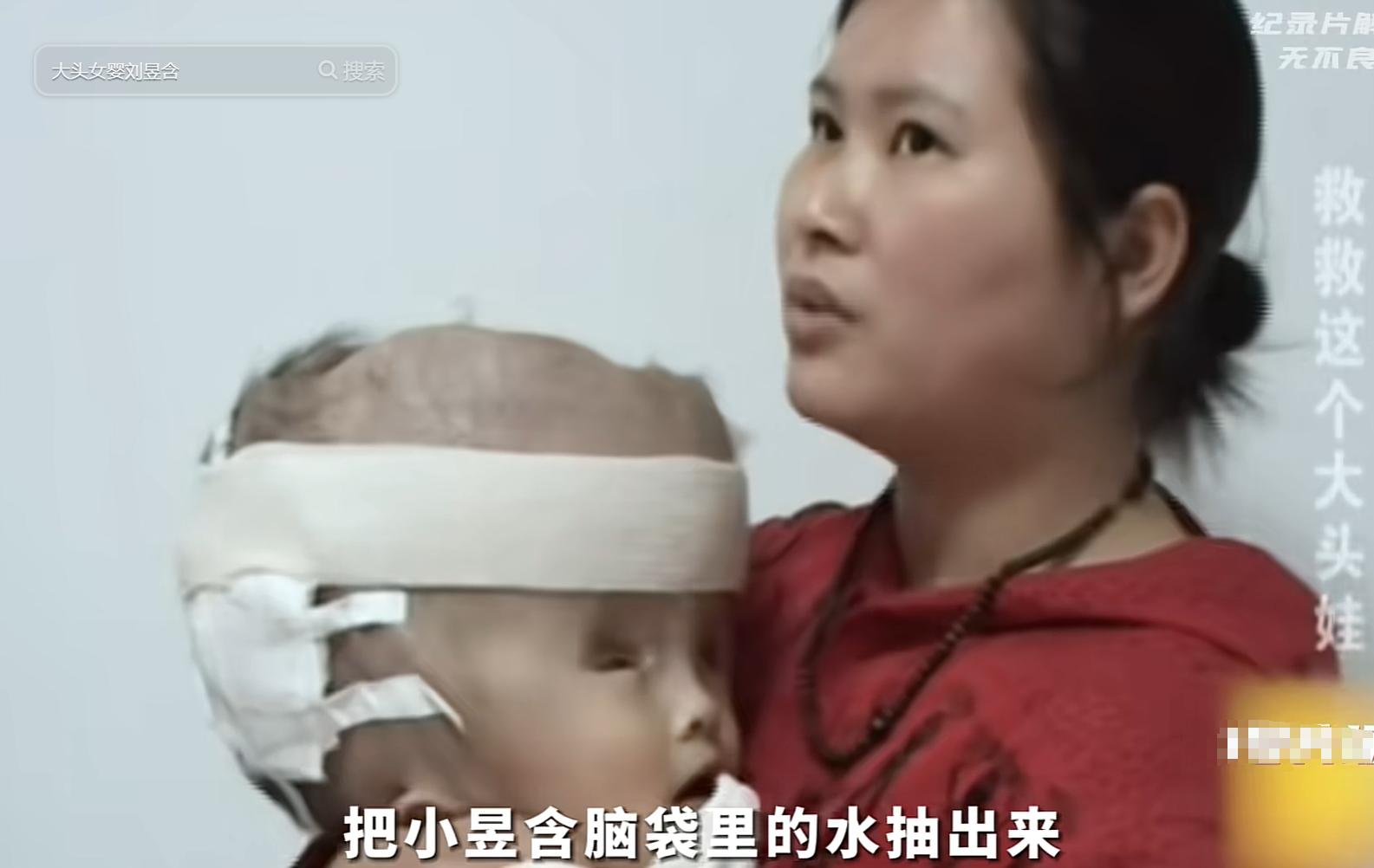 但是一岁的刘昱含出生之后,他的头就像吹气球一样慢慢的长大,到她一岁的时候,头就像一个大西瓜一样大,重达10斤左右,而她的身体却因为营养不良瘦瘦的,整个人看起来就是站都站不起来,因为头太重了摇摇晃晃的。