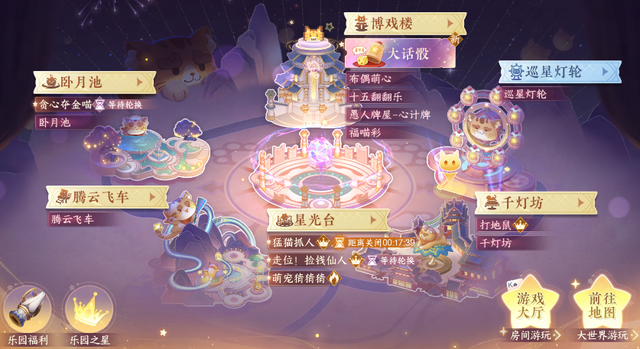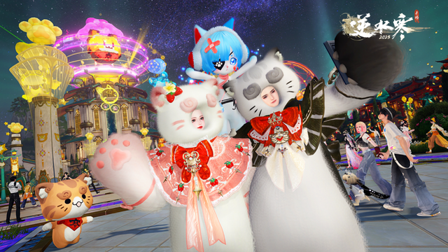 既然是游乐园,那么经典项目过山车、摩天轮可不能少,主打放松和热闹的花瓣温泉、烟花盛会、小吃街也已准备就绪。在游乐园里,一起带着宠物参与趣味竞赛,或是在“福喵彩”“娃娃机”碰碰运气,享受着超多猫猫NPC的服务,完全可以说是“享受”~