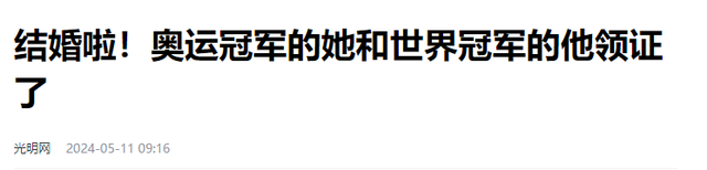 【1】2024年5月1日发布 光明网 结婚啦!奥运冠军的她和世界冠军的他领证了