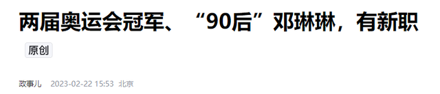 【2】2023年2月22日发布 政事儿 两届奥运会冠军、“90后”邓琳琳,有新职