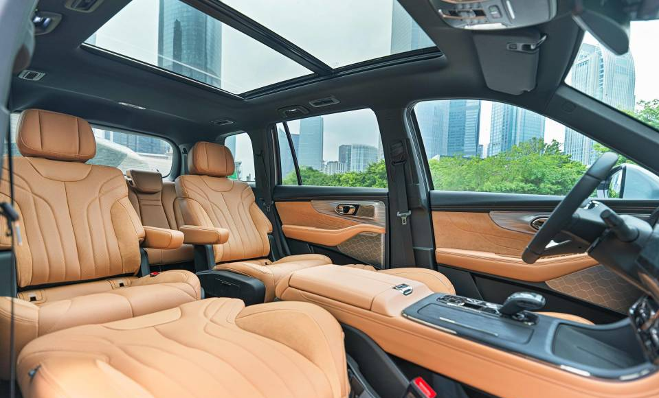 坐进车里我就更惊喜了。内饰用料讲究,做工也很精致。中控台上有块14.6英寸的大屏,显示效果很清晰。仪表盘是12.3英寸的全液晶屏,信息显示丰富。高配车型还有AR实景导航,开车找路方便多了。最让我满意的是空间,三排座椅都很宽敞,后备箱容积也很大,一家人出游绰绰有余。