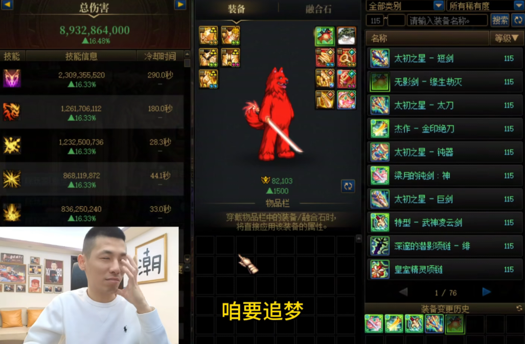 DNF这游戏的土豪大佬非常的多,但是大家公认的国服第一大佬却是只有一位的,那就是旭旭宝宝。作为国服第一人,旭旭宝宝目前的装备增幅等级是全服最高的,全身增幅18的装备没有其他玩家可以超越。