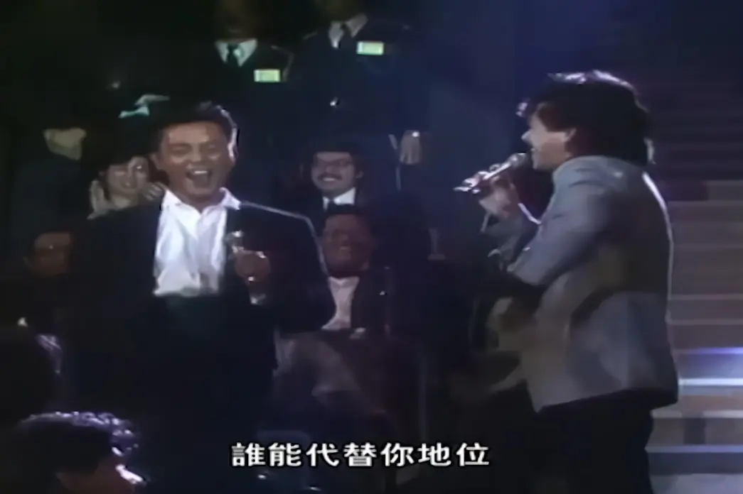 唱到兴起的时候,他还会走到原创歌手面前,示意他们起来飙歌,尽管他们才是歌曲的原唱,但在林子祥面前,却纷纷败下阵来,甚至张国荣都唱破了音,谭咏麟还落荒而逃。