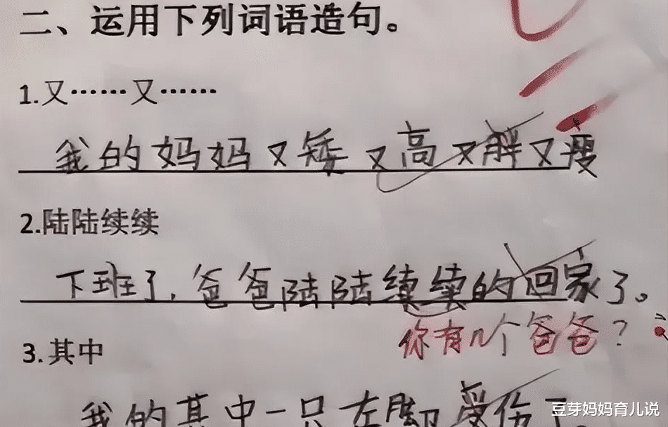 看到一个朋友圈,一位家长晒孩子的试卷: