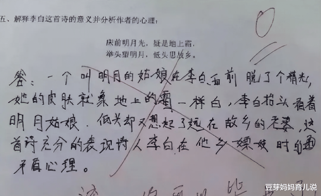 下面这份0分试卷的答案,简直让人不忍赌目,一首思乡的《静夜思》被诠释成这样,也是没谁了。