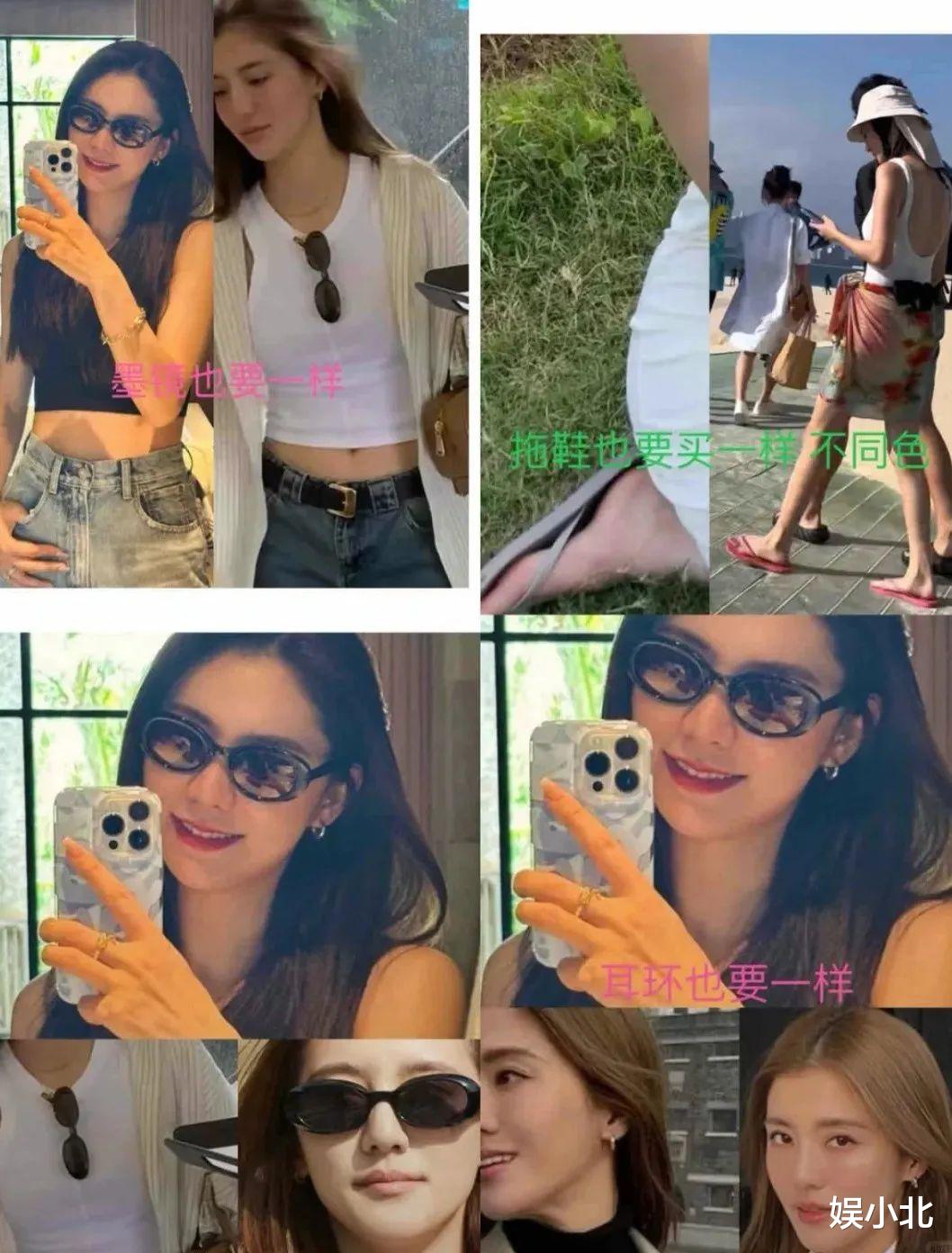 吴千语的墨镜、拖鞋、耳环,总能在张馨月身上看到同款。
