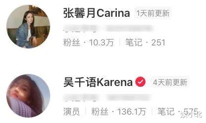 以前,张馨月的英文名叫Ada,后改为Carina,发音为卡瑞娜,而吴千语的英文名Karena发音正是卡瑞娜。