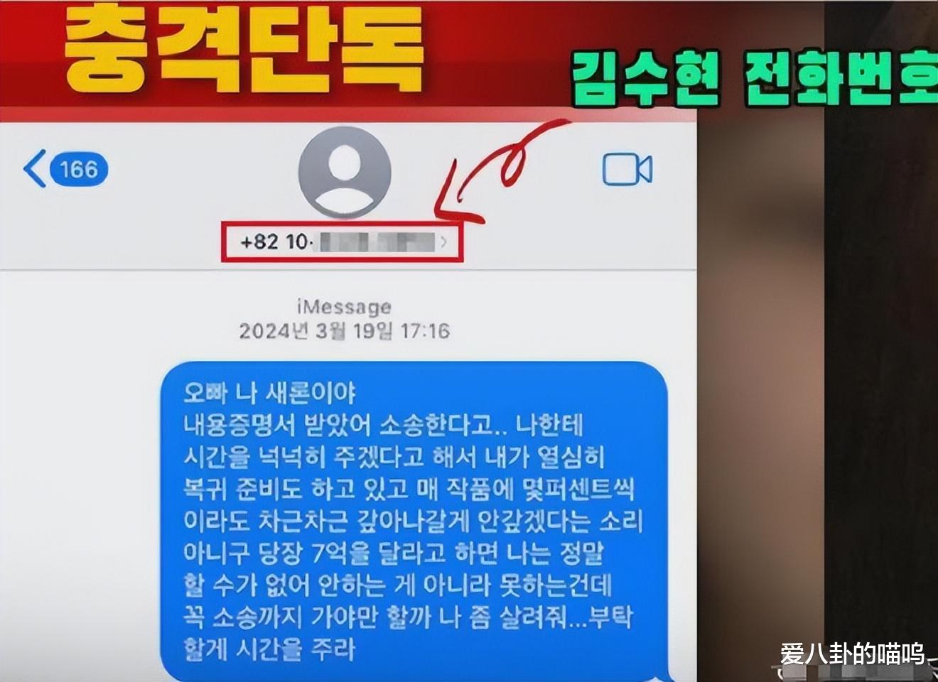 2024年3月19日的短信记录显示,金赛纶哀求金秀贤暂缓追讨7亿韩元债务,用祈求的语气恳求金秀贤,让她慢慢还钱:
