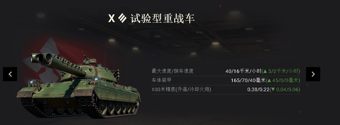 现在的试验型重战车堪称十级最全能的重坦,在火力、防御和机动上的表现都相当不错。它的核心特色就是一门有特殊冷却机制的主炮,正常情况下有着和T110E5持平的基础DPM,如果完成冷却的话能拿到0.22的精度,在游戏中是断档级别的领先!对广大车长来说,这个精度就真的是字面意义上的抠像素了。
