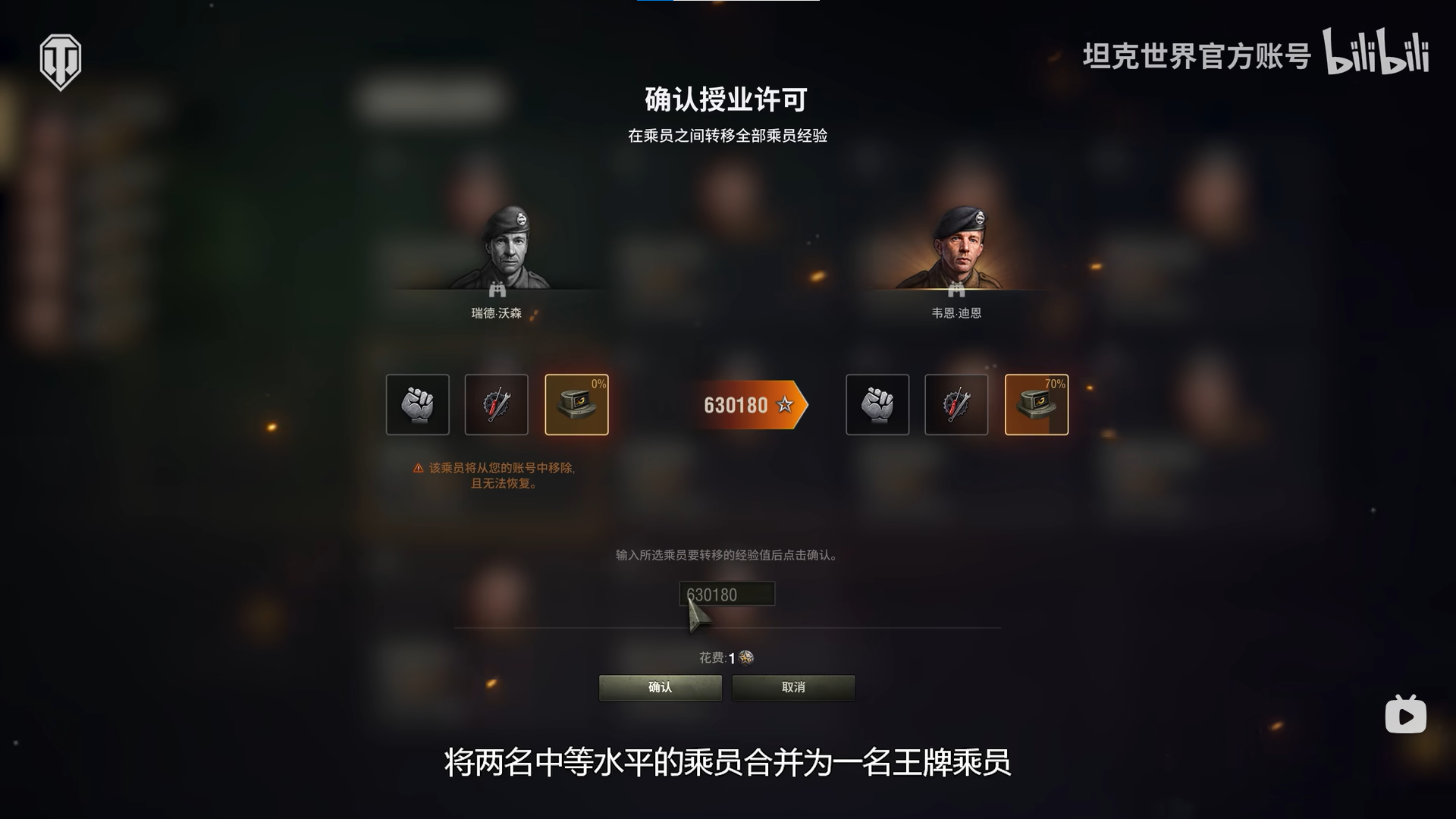 在乘员功能方面,《坦克世界》这次还上线了授业功能。通俗来说就是用新的道具“授业许可”,来将一名乘员的经验转移到另一名乘员身上。这个功能既可以帮助新手车长节约兵营床位,还能帮助老车长优化乘员组合,可谓是一举多得!不过需要注意的是,乘员“授业”后就无法再次招募,要谨慎考虑!