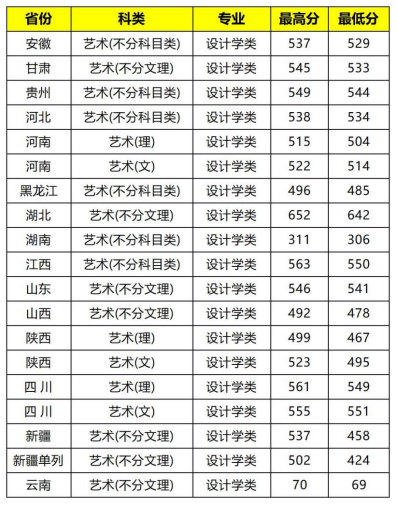 报考设计学类专业考生的美术学与设计学类统考(或联考)成绩及高考文化课成绩均达到考生所在省相应批次最低录取控制分数线即可填报我校。生源所在省级招生考试管理部门明确规定艺术类招生考试成绩排序规则的,我校将按照相应规定进行招生录取;生源所在省级招生考试管理部门未明确规定艺术类招生考试成绩排序规则的,我校将以报考考生的高考文化课考试与专业考试综合成绩为依据,按照考生综合成绩从高分到低分排序进行录取。