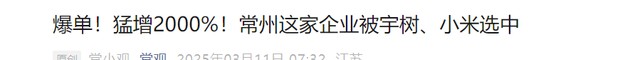 爆单!猛增2000%!常州这家企业被宇树、小米选中