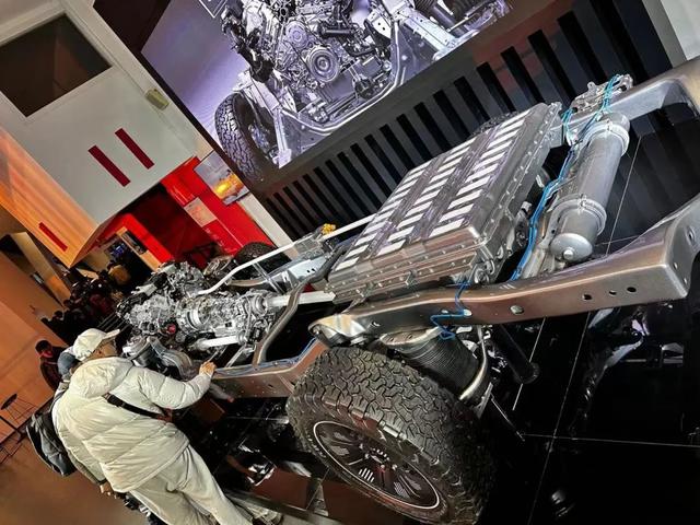 Hi4-T和Hi4名字上很像,却是完全不同的路线,Hi4仍然是依靠前后双电机来实现四驱,而Hi4-T更像是传统的燃油四驱结构,纵置发动机+纵置变速箱+分动箱+传动轴+三把锁,只不过是在变速器前面加入了一个P2电机,在后桥位置增加了电池包,四驱的动力仍然是通过传动轴来输送的,这和比亚迪的DMO有着明显的区别。