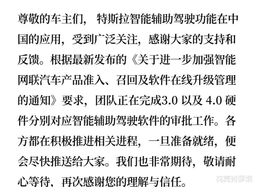 3月24日下午,消息传来,特斯拉FSD的推送暂停了。不少人瞬间紧张起来,这可是期待已久的智能驾驶功能啊!难道是出了什么问题? 细细想来,其实没那么可怕。官方回应很快跟上:并非撤回,只是因为要完成相关审批工作。 这暂停,是为了更稳妥、更安全的未来。 想想看,我们把自己的安全交付给一台机器,这份信任需要建立在严格的审核之上,不是吗?