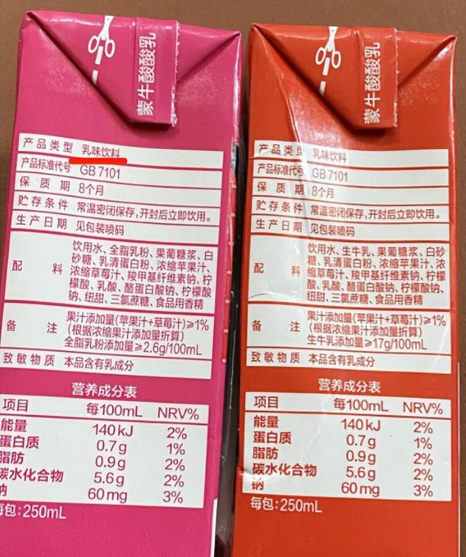 并且这种现象在“酸奶”品牌中还十分常见,从国家的标准来看,酸奶跟这些所谓的“风味饮料”存在很大的区别。